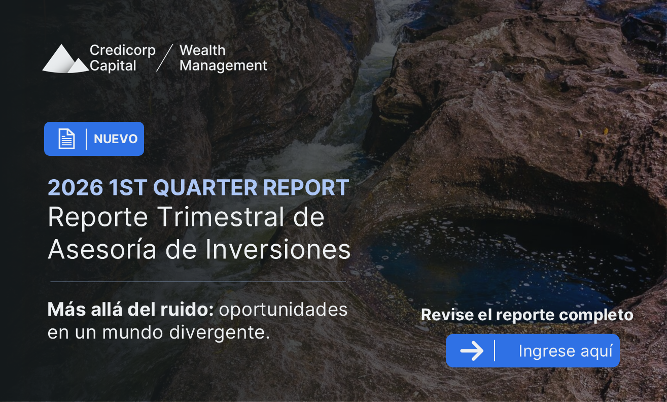Todos los estudios, análisis, reportes, data, opiniones y noticias contenidas en este sitio web, están desarrollados en base a información pública y son meramente referenciales. Son entregados a usted con el solo propósito de brindar información general del mercado, y la información que se entrega en el sitio web no debe ser la única base para la toma de una apropiada decisión de inversión. Cada inversionista debe hacer su propia evaluación en función de su propia tolerancia al riesgo y estrategia de inversión, entre otras consideraciones, no cabiéndole, en consecuencia, responsabilidad alguna a Credicorp Capital Corredores de Bolsa SpA, o a cualquiera de sus sociedades relacionadas en sus decisiones de inversión. Asimismo, esta información no garantiza la ganancia de las inversiones ni protege contra eventuales pérdidas que pudieren producirse a los inversionistas que adopten sus decisiones sobre la base de la información contenida en este sitio web. Esta información no constituye una recomendación, solicitud ni oferta de precio, ni una sugerencia u oferta para invertir en ninguno de los instrumentos financieros a los que se hace referencia en el sitio web.